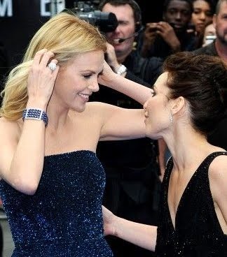 Charlize Theron sparkled in platinum jewelry by Bulgari at the world premiere of her film “Prometheus” in London on May 31st: