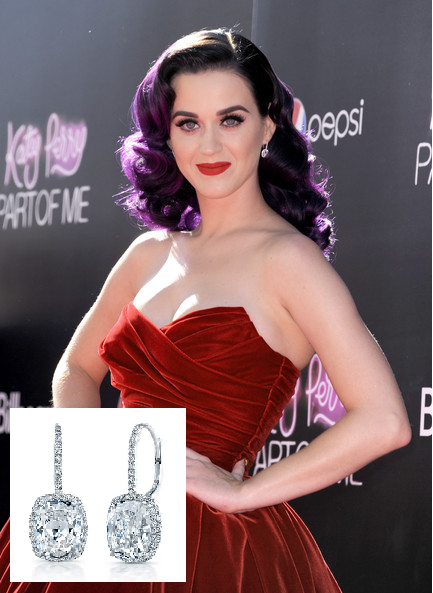 Singer Katy Perry wearing Norman Silverman diamond earrings to the ‘Katy Perry: Part Of Me’ Los Angeles Premiere at Grauman’s Chinese Theatre on June 26, 2012 in Hollywood, California.