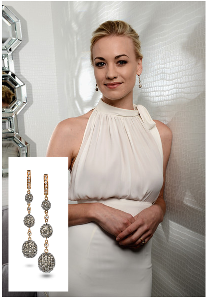 Actress Yvonne Strahovski wearing Le Vian earrings and a Amrapali ring at the 8th Annual Australians in Film Breakthrough Awards, held at the InterContinental Hotel, on June 27th.