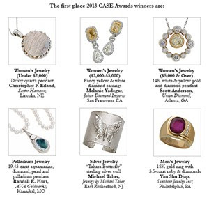 The 2013 CASE Awards were sponsored by Palladium Alliance International and Platinum Guild International, USA. For more information about the competition and to view the Winner’s Photo Gallery, www.jewelers.org/caseawards.