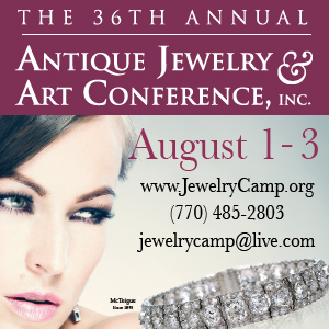 The goal of the Antique Jewelry & Art Conference | Jewelry Camp© is to function as an educational tool to promote knowledge in antique and estate jewelry not only to the jewelry industry and collectors but also to the public. Its aim is to create a community for networking to aid in the dissemination of knowledge. In this fast paced world, it is important to rely on each other for education, support as well as networking. For more information visit www.jewelrycamp.org; email: jewelrycamp@live.com; phone: 770.485.2803.