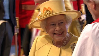 One more additional piece of jewelry that was so sentimental – the Queen wore sunshine yellow and Queen Mary’s True Lover’s Knot Brooch