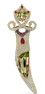 Leslie David Baker (“The Office”) wore a Dagger pin featuring 17 carats of Zultanite with 1.73 carats of diamonds and .58 carats of rubies – retail price $56,000.
