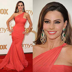 Sofia Vergara looks stunning in 18k Gold, Diamond and Emerald Earrings. The earrings have over 100 carats of Emeralds, and more than 60 carats of diamonds. She wore a 6 carat Emerald and Diamond dangle ring and Lorraine’s sister, OFIRA’s 18K Yellow Gold and Diamond cuff.