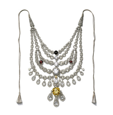 Key artworks in the exhibition include the famed throne once belonging to the Sikh ruler Maharaja Ranjit Singh; elaborately detailed paintings of regal processions; costumes and traditional dress worn by great kings and queens; ceremonial daggers, swords and matchlock guns; and prized photographs by Man Ray, Cecil Beaton, and others. Visitors will discover the Patiala necklace—Cartier’s largest single commission in history—and a horse drawn carriage decorated entirely in silver made for the Maharaja of Bhavnagar in 1915, among other stunning highlights.