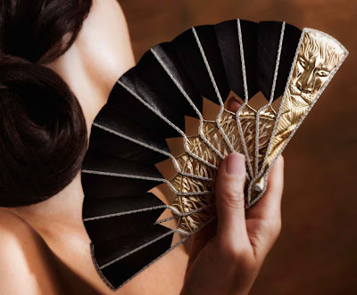 This being the case, I have taken particular delight in trying to show that we can fulfil the moral obligation of “sustainability”, without sacrificing one little bit of creativity, glamour, desireability, luxury and mystique. I feel this has all been achieved in this design called “Tyger, Tyger”, as well as the functionality of a working, foldable, ladies fan. The exotic Tiger motif, encapsulates so many things which are perfect for such an item: The Tiger represents nature and an endangered creature. In this sense, it stands for the world we have inherited, used and neglected and need to care for – it and its habitat, needs to be protected and “sustained”. In the aesthetic sense, the tiger represents beauty and feminity, strength and independence and of course, a wild and untamed spirit – all things which are desireable in the design of a bold and striking piece of jewellery.”