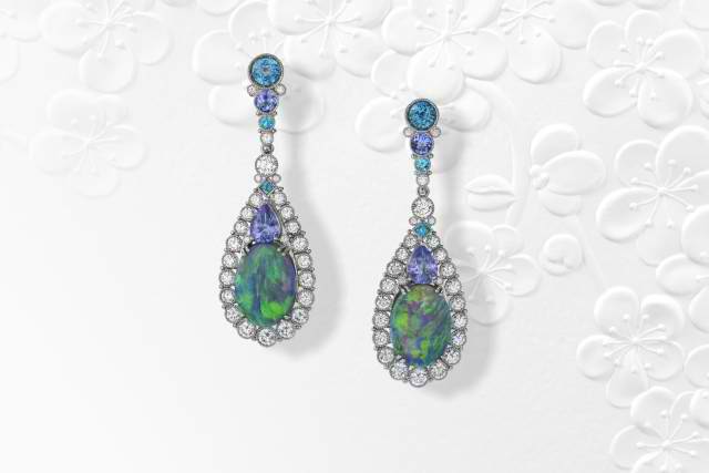 | Deirdre Featherstone’s Opal, Tanzanite, Blue Zircon, Paraiba Tourmaline and Diamond Earrings |