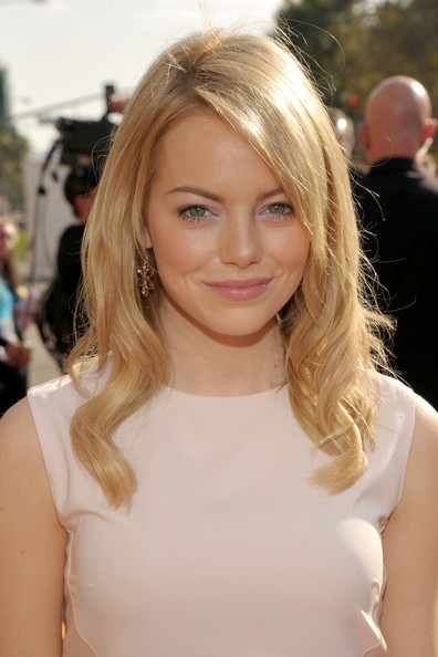 Emma Stone and her real-life boyfriend Andrew Garfield walk the red carpet together at the 2012 Kids Choice Awards. The 23-year-old actress wore an Antonio Berardi top and skirt, Alejandro Ingelmoshoes, a Fendi bag, and Irene Neuwirth Jewelry.