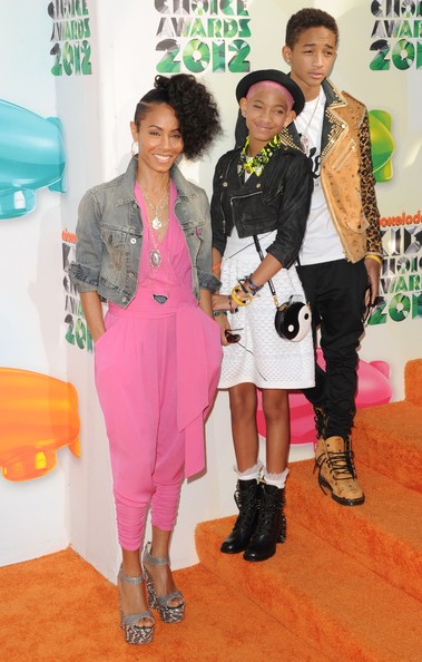 Jada Pinkett Smith walked the “Orange” carpet with her kids in a fuchsia silk cap sleeve cropped jumpsuit by Catherine Malandrino, wearing Kimberly McDonald jewelry. Willow debuted a new pink hairdo in a Chanel dress, a vintage motorcycle jacket, and custom Chanel boots. Jaden wore a custom vintage MCM motorcycle jacket and custom MCM boots.