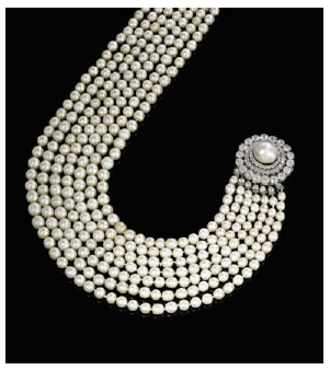 Prince Alexandre Murat, through his ancestry with Joachim Murat (1767 – 1815) who married Caroline Bonaparte, Napoleon’s sister, was associated with one of the most glorious periods of French history. The heroic cavalry charges of Joachim Murat, an inn‐keeper’s son from Gascony, contributed to the victories of Iéna, Eylau and Austerlitz and from 1808‐1814 he and Caroline were popular rulers of the Kingdom of Naples and Sicily. The diadem boasts one of the largest natural pearls ever recorded, at 303.37 grains. As stated by the SSEF laboratory, “the main pearl in the center is outstanding in its size and one of the most important pearls certified so far at the SSEF” and “natural pearls of this size, quality and with a documented historic provenance are very rare and thus the described tiara with three large pearls represents a very exceptional treasure”.
