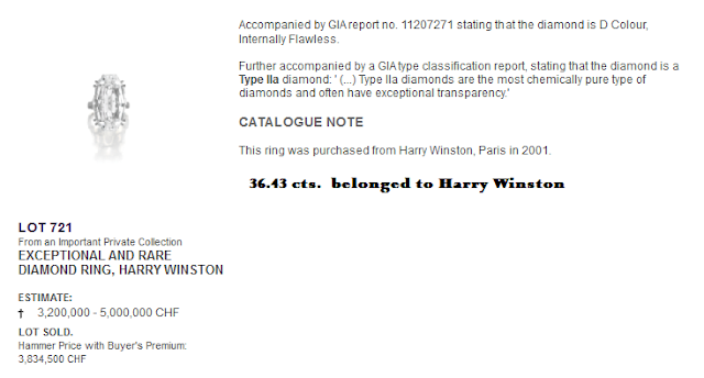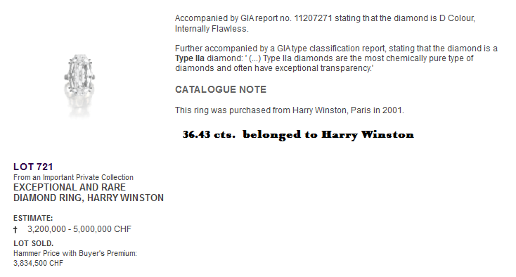The sale comprised a group of white diamonds which were D Colour ‐ the finest colour grading for white diamonds. An exceptional diamond ring by Harry Winston set with a 36.43 carat internally flawless diamond (lot 721) realised CHF 3,834,500 ($4,113,153) (est. CHF 3,200,000‐5,000,000/ $3,550,000‐5,500,000). This stone had been found to be part of the rare Type IIa subgroup comprising less than 2% of all gem diamonds. Diamonds of this group are chemically the purest of all diamond crystals and often have extraordinary optical