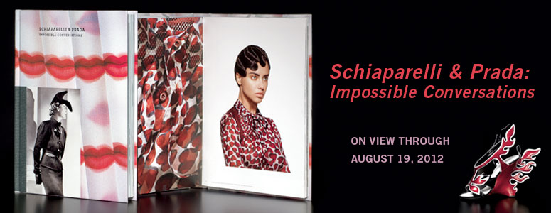 The Met’s Spring 2012 Costume Institute exhibition, Schiaparelli and Prada: Impossible Conversations, explores the striking affinities between Elsa Schiaparelli and Miuccia Prada, two Italian designers from different eras. Inspired by Miguel Covarrubias’s “Impossible Interviews” for Vanity Fair in the 1930s, the exhibition features orchestrated conversations between these iconic women to suggest new readings of their most innovative work. Iconic ensembles are presented with videos of simulated conversations between Schiaparelli and Prada directed by Baz Luhrmann, focusing on how both women explore similar themes in their work through very different approaches.
