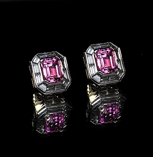 | Pink Sapphires in the greatest color and matched in size. We framed the sapphires in 14k gold and had the diamonds cut, creating a frame around these beauties. |