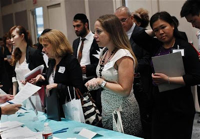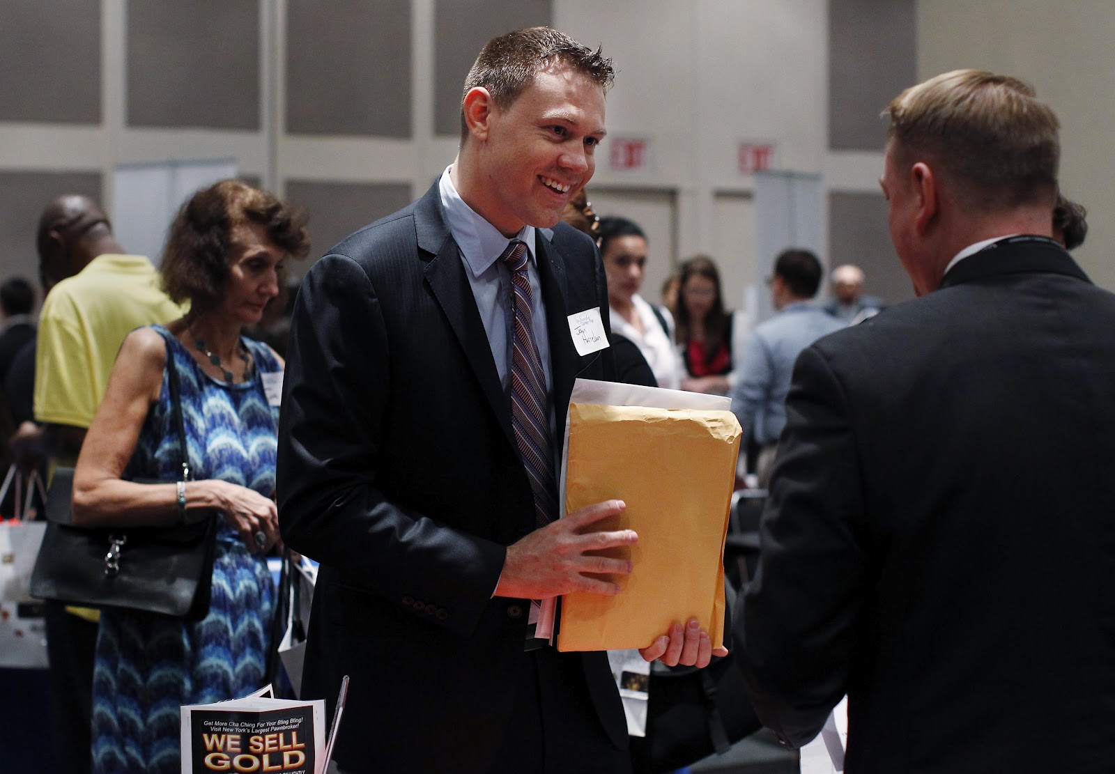 People speak with recruiters from jewelry and gem companies during the Gemological Institute Of America ‘s Jewelry Career Fair in New York July 30, 2012. REUTERS/Shannon Stapleton |