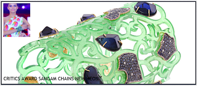 The Critics’ award for the formal wear category went to Sangam Chains creation – a cuff for the hand titled the New Neon, a piece that is an intricately cut from acrylic manchette highlighted with cabochon sapphires and gold.