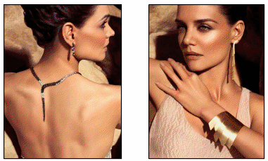 | A very sultry Katie Holmes was the face of the Iris Collection representing the riches of the earth and air. http://dailyjewel.blogspot.com/2012/09/katie-holmes-bronzed-beauty-in-hsterns.html |