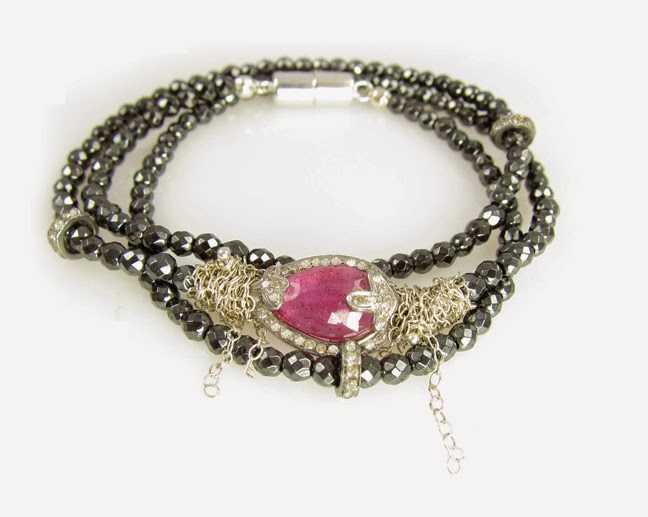 …and then there was one… One-of-a-kind triple wrap bracelet/necklace with pave bezeled ruby, diamond roundels and magnetic clasp. $1,375