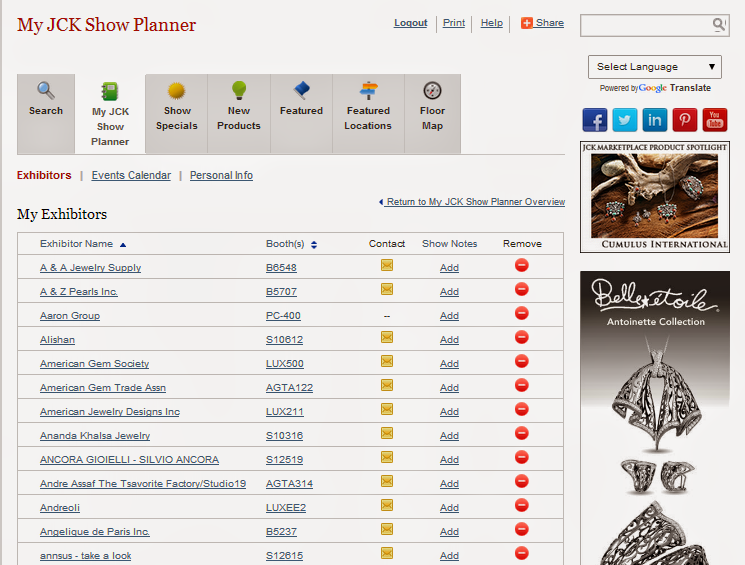 Once you have registered for any JCK Show you can go to the site for that show – we’ll use Las Vegas – and sign in to a My JCK Planner account.
