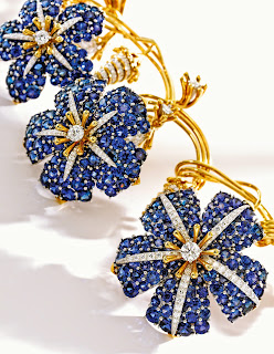 Seminal designs by Jean Schlumberger for Tiffany & Co. from a Distinguished American Collector include the 18 Karat Gold, Platinum, Sapphire and Diamond ‘Morning Glory’ Necklace (detail right, est. $100/150,000), an example of which was most recently presented in Vivienne Becker’s book The Impossible Collection: The 100 Most Important Jewels of the Twentieth Century.