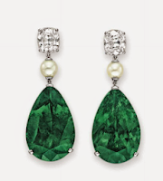 A pair of Colombian emerald ear pendants of 18.98 and 16.75 carats Estimate: $650,000