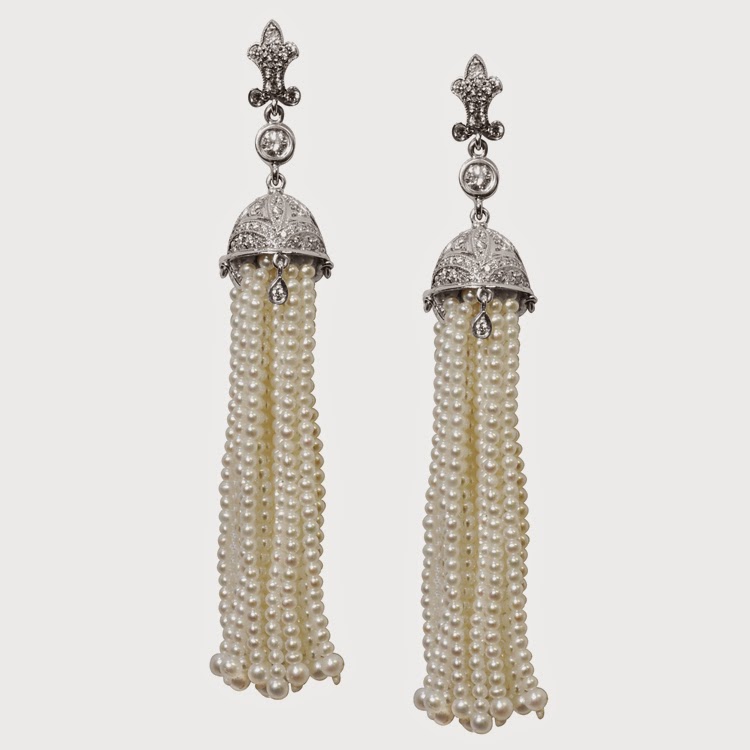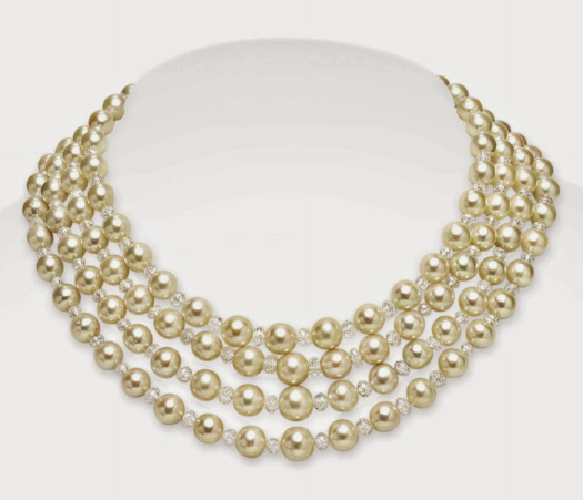 Natural Pearls in an exceptional four-‐strand natural pearl and diamond necklace formed of 148 individual pearls (pictured left; estimate: $500,000 – 700,000) ranging in size from 9.10 to 5.30 mm in diameter.