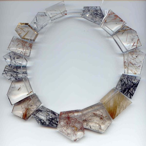 24K yellow gold “Wheel of Light” numinous pendant featuring an 825 ct. Quartz, Paraiba Tourmaline, Hauyn, Ruby, spessartite Garnet, golden rutilated Quartz and fire Agate beads.