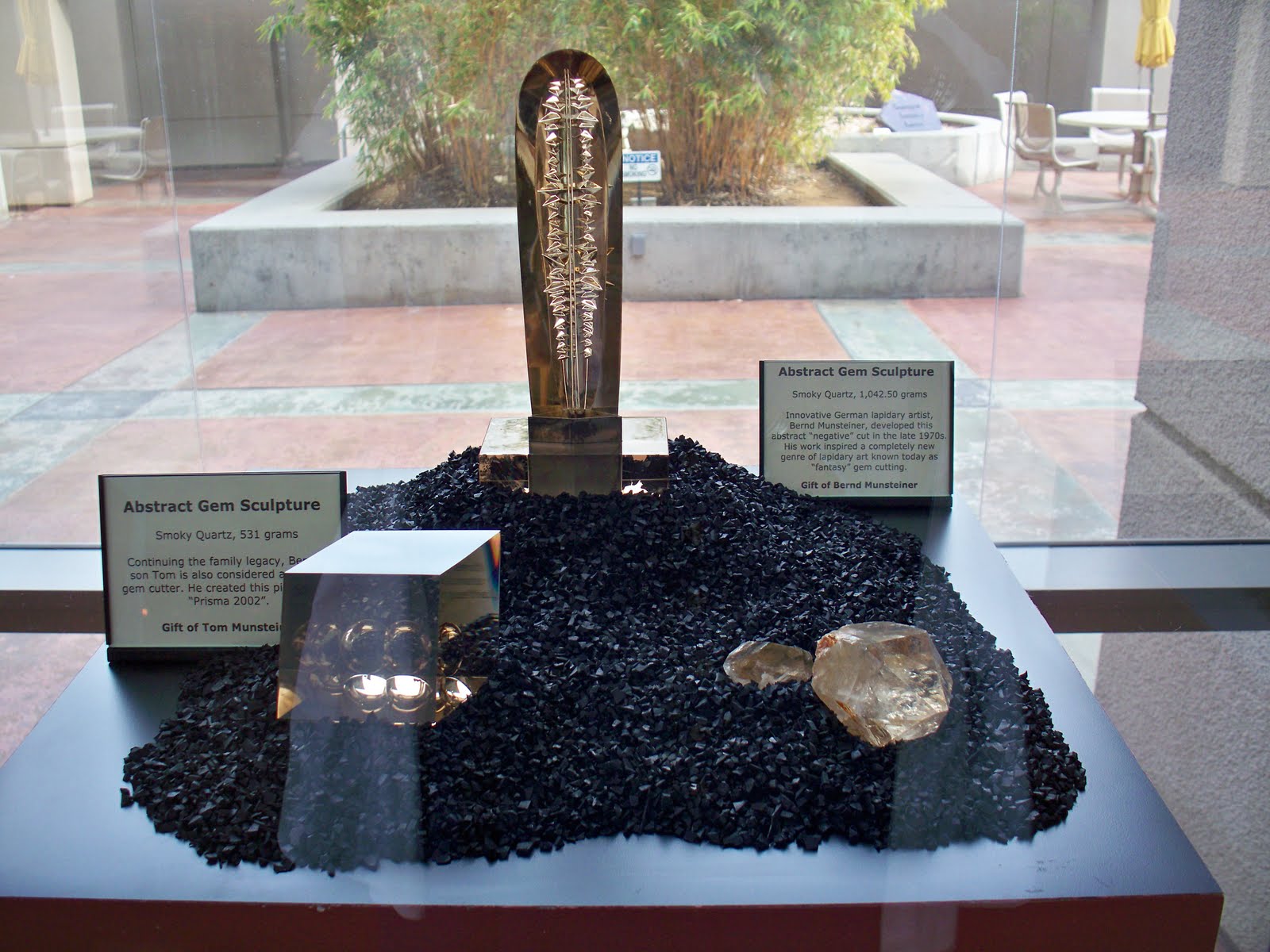 These cases are in the student lunch/break area…the first one holds two Munsteiner (tall one from Bernd and front one from Tom) carved Quartz pieces from Idar Oberstein…