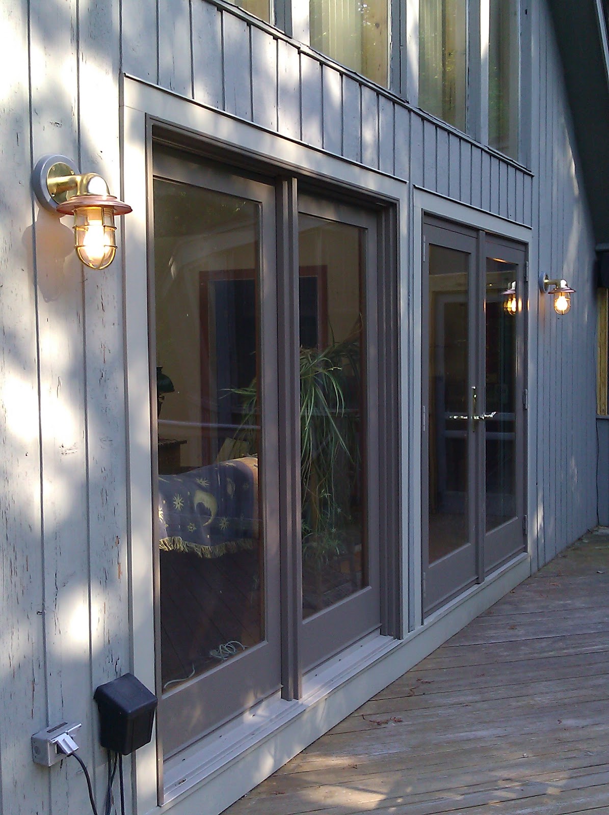 At the Brimfield, Mass show last week, we found some treasures. Lights from selvaged ships were great, and now adorn our deck. A gorgeous door facade would have been beautiful on one of our walls, but it was tres expensive. But we have pics of it.