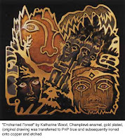 The workshop is three days long, and will be offered by the Oatka School of Glass in Batavia, New York. It will be taught by enamelist Katharine S. Wood. Her work is published in the book “The Art of Fine Enameling”. She has been working with enamels for over 20 years. She does all types of enameling, however, she specializes in the technique called champleve’. This combines acid etching and enameling. Both are my current focus.