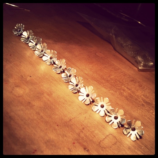 And these are new daisy chain hoops. This past weekend I was taking some photos of iron work {not at all unusual} and realized where my influence came from with these designs. When I get a chance I will go through my photo collection and write a post with finished piece and inspiration.