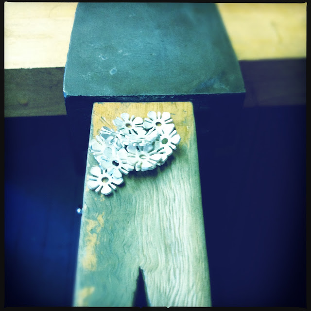 The clasps on these get soldered after the flower has been cleaned [of solder and fire scale], textured, oxidized and tumbled. This is because the flowers are so perfectly tiny and won’t fit over the clasps.