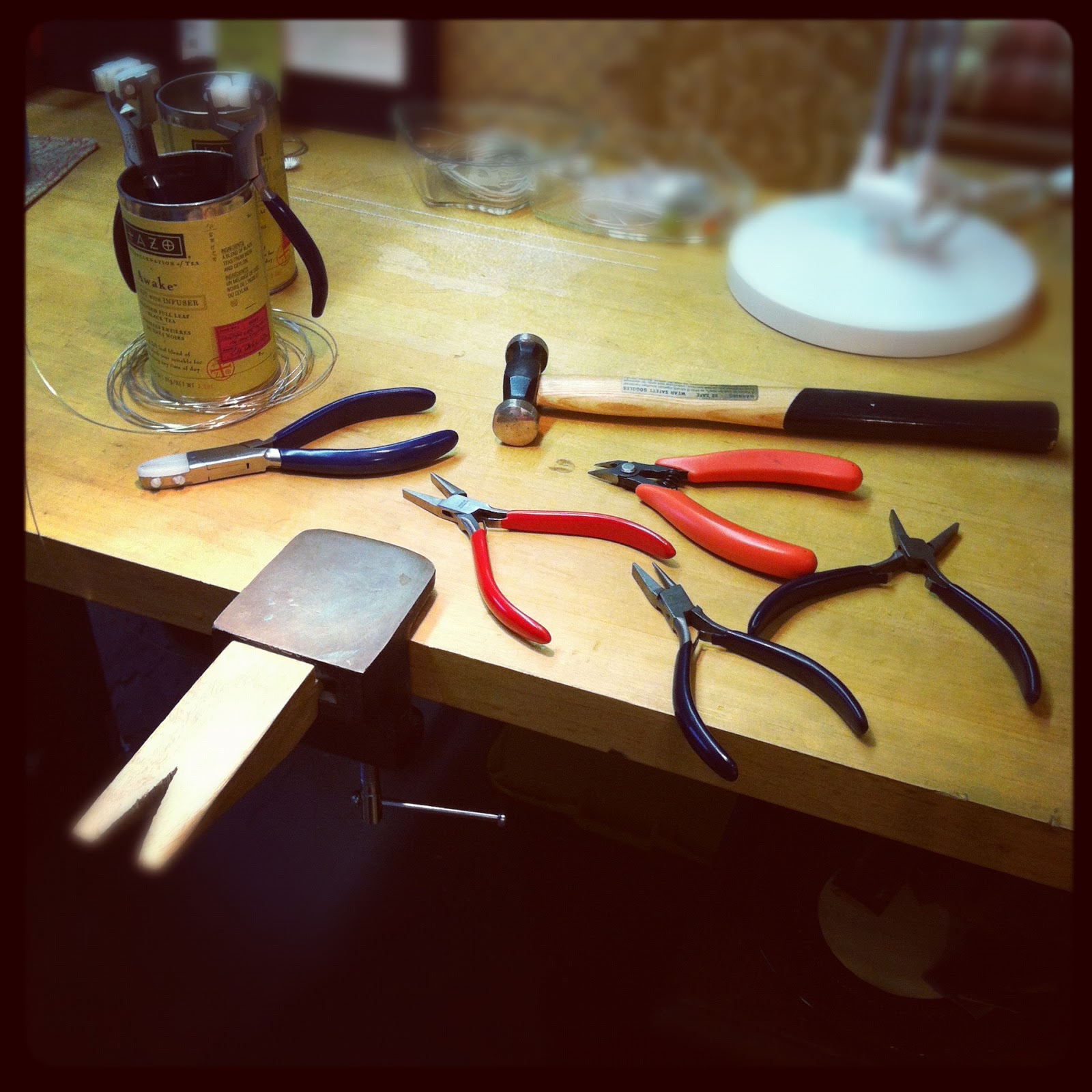 There are lots of tools and many steps needed to make these seemingly simple necklaces.