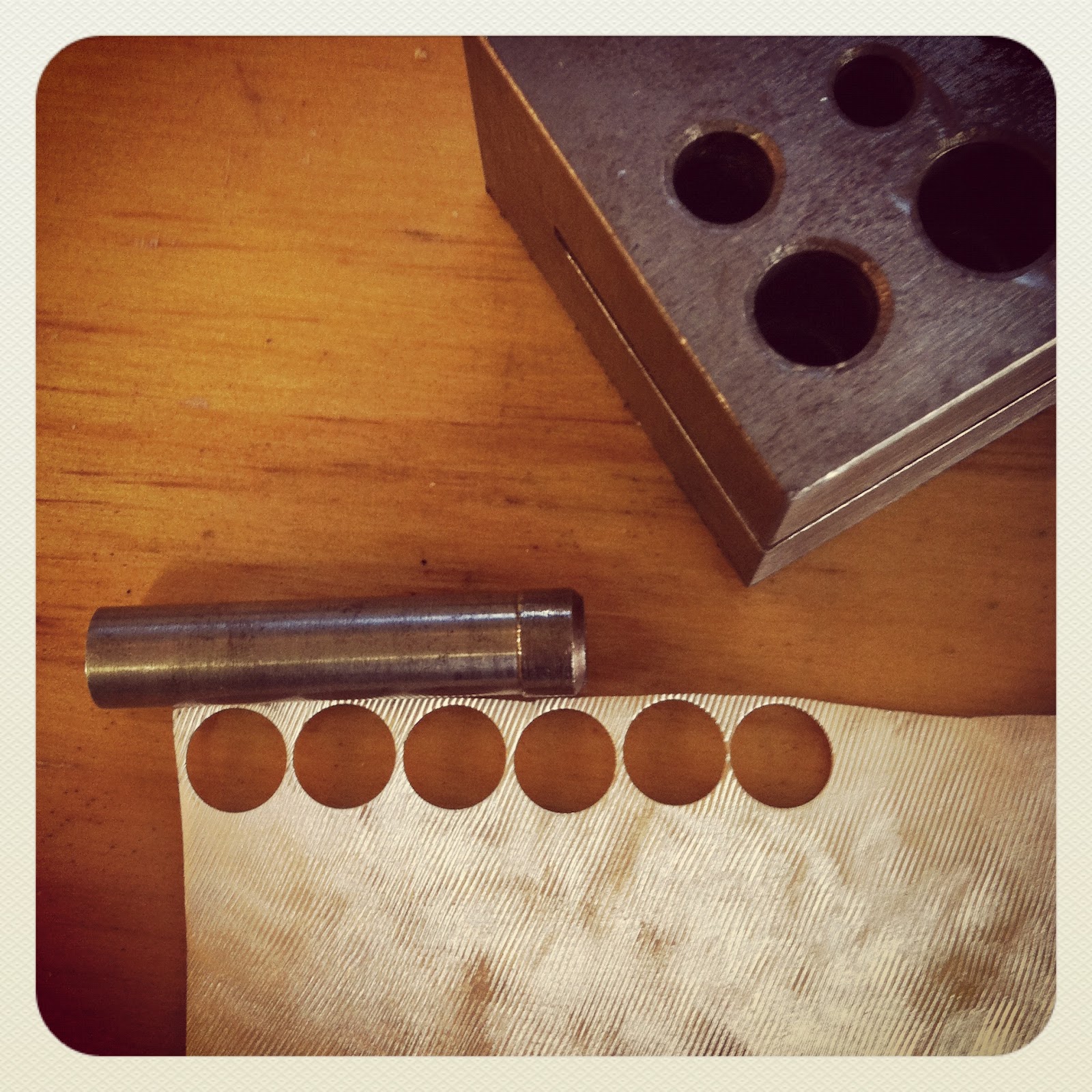 Next up I dap a whole lot of discs. Using one of my favorite hammers. There are a few reasons for this love affair, the head is dinged, it has the previous owner’s name stamped into the handle and I bought it from an antique shop in a quaint little Maine neighborhood. It seems to have a story behind it which I am adding to every time I hammer away with it.