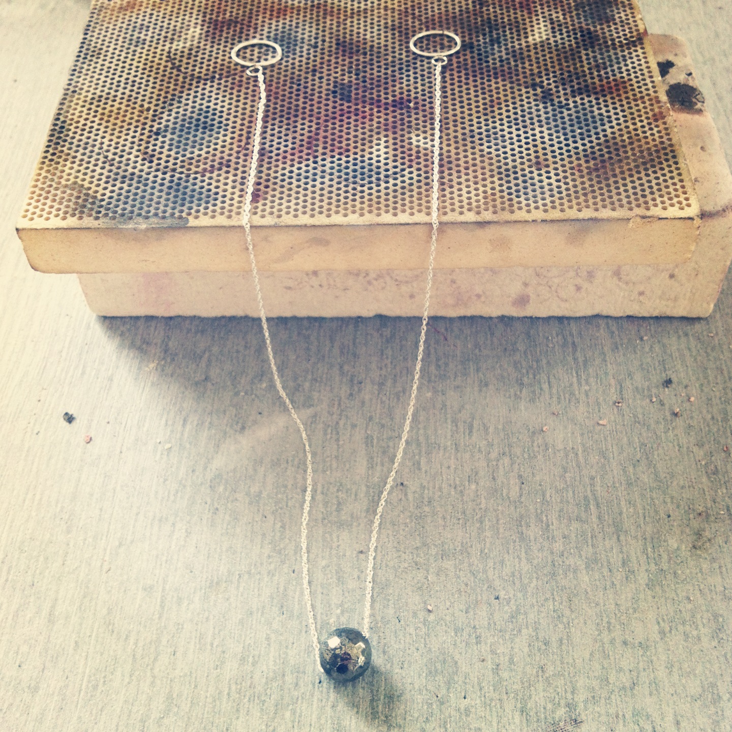 I love the movement of the pyrite on the chain. It gives my hands something to fiddle with when I step away from my jeweler’s bench and interact with the public.
