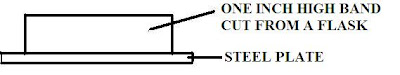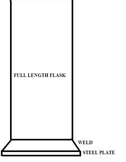 1. Cut a 1″ high band off several different diameter flasks. Weld each size to a steel plate. This assemble will become the bottom part of the cover assembly.