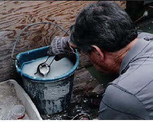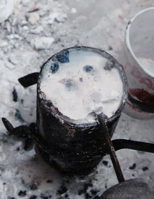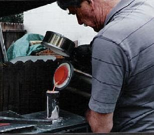 3. Before pouring the metal put about a teaspoon of wax shavings into the base assembly.