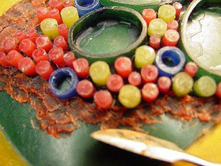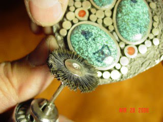 Fire scale usually shows up, as a purple or copper stain in the metal, during the polishing process. It prevents sterling silver or gold from being polished to its fine, brilliant luster.