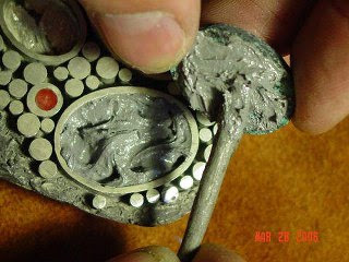 Wax is then thrown on the sprue button and the second solder pad is immediately placed on top of the cover flask.