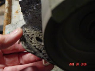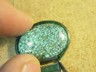 The casting was quenched seven minutes after the pour. It was brushed with a brass brush to remove the investment. Investment can still be seen under the bear. The casting was not pickled and does not need to be pickled before polishing it. It is free of both cupric oxide, the black oxide, and cuprous oxide, fire scale.