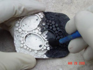 Castings, when removed from the mold, are bright silver. They do not have to be pickled to remove the black coat. In some instances they can be polish with jewelers rouge after removal from the quench water.