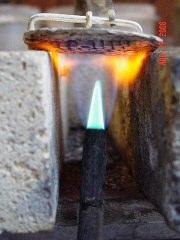 Place a soldering pad on the cover flask. The wax shavings will attempt to burn and will absorb all the oxygen around the mold flask and the metal it contains. A reducing atmosphere will be created around the mold flask. There will be no oxygen remaining in the cover flask to combine with the copper in the sterling silver to form firescale.
