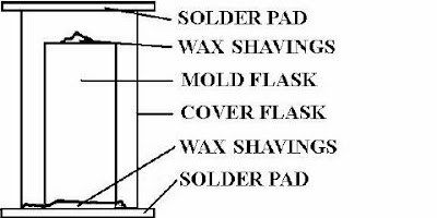 The process requires two smooth soldering pads, scrap wax shavings and an empty flask the next size larger than the mold flask.