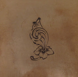 On the piece above I drew some circles to represent the sides of a ring and did a wheat leaf pattern up the left side and a 1/2 wheat leaf up the right. These still need a great deal of practice.