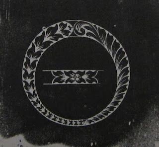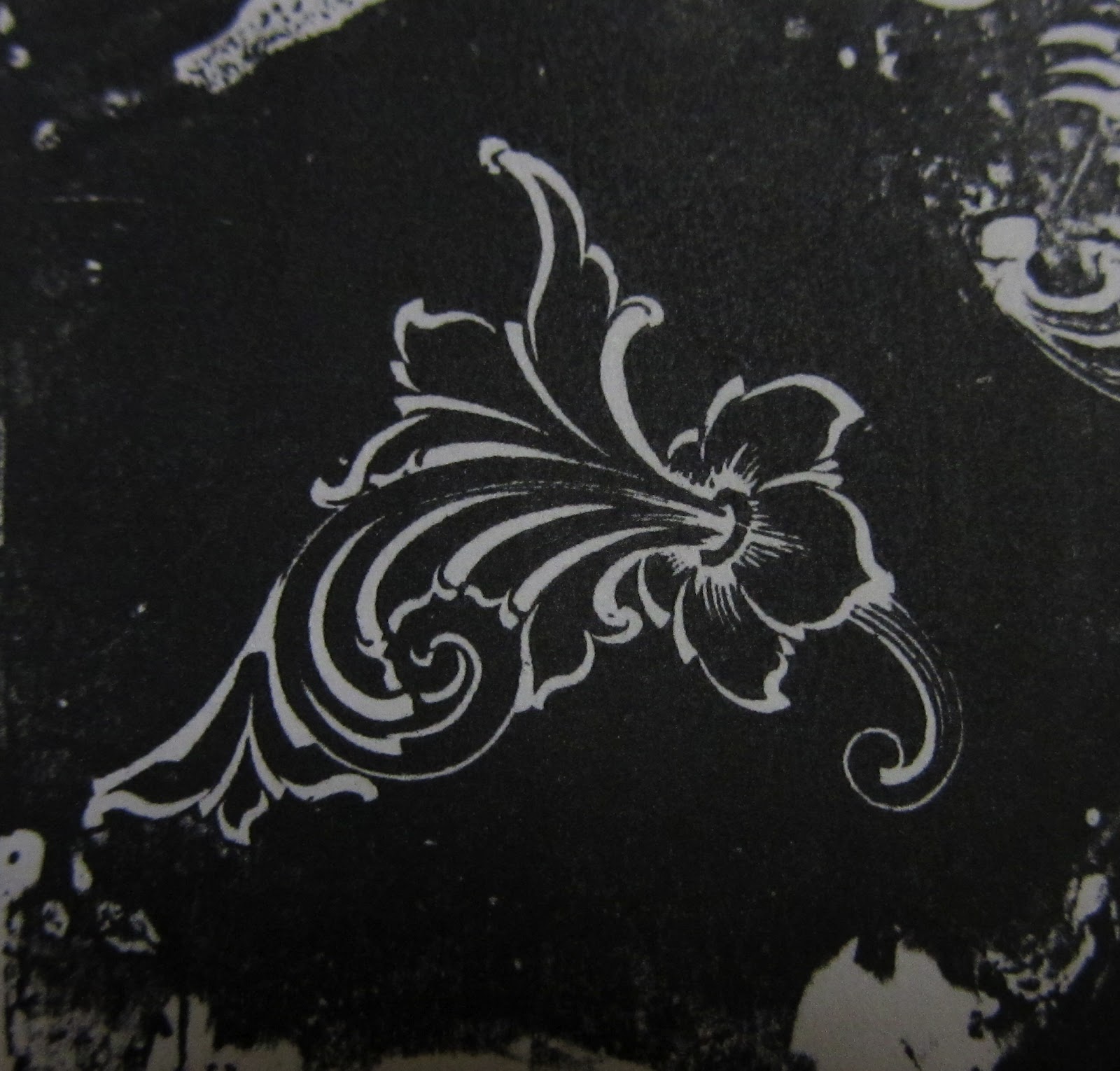 New Approach School for Jewelers) but luckily I have my notes that were taken for me when I missed this ornamental hand engraving class several years ago. The best way for me to photograph the engravings is to take a smoke pull. We are engraving on flat sheet metal, you take the metal and hold it over a candle and get the engraved section covered in soot. Then you take tape, and tape over the engraving and stick it to white paper. The white is where metal was engraved and removed. In a way this is like the negative of a picture. All of these engravings were done by the teacher